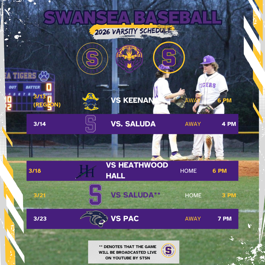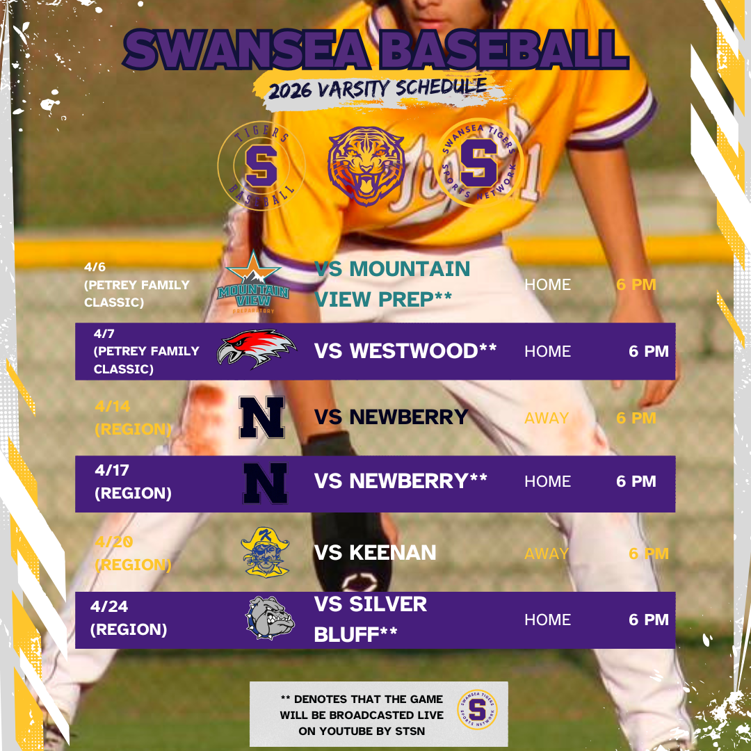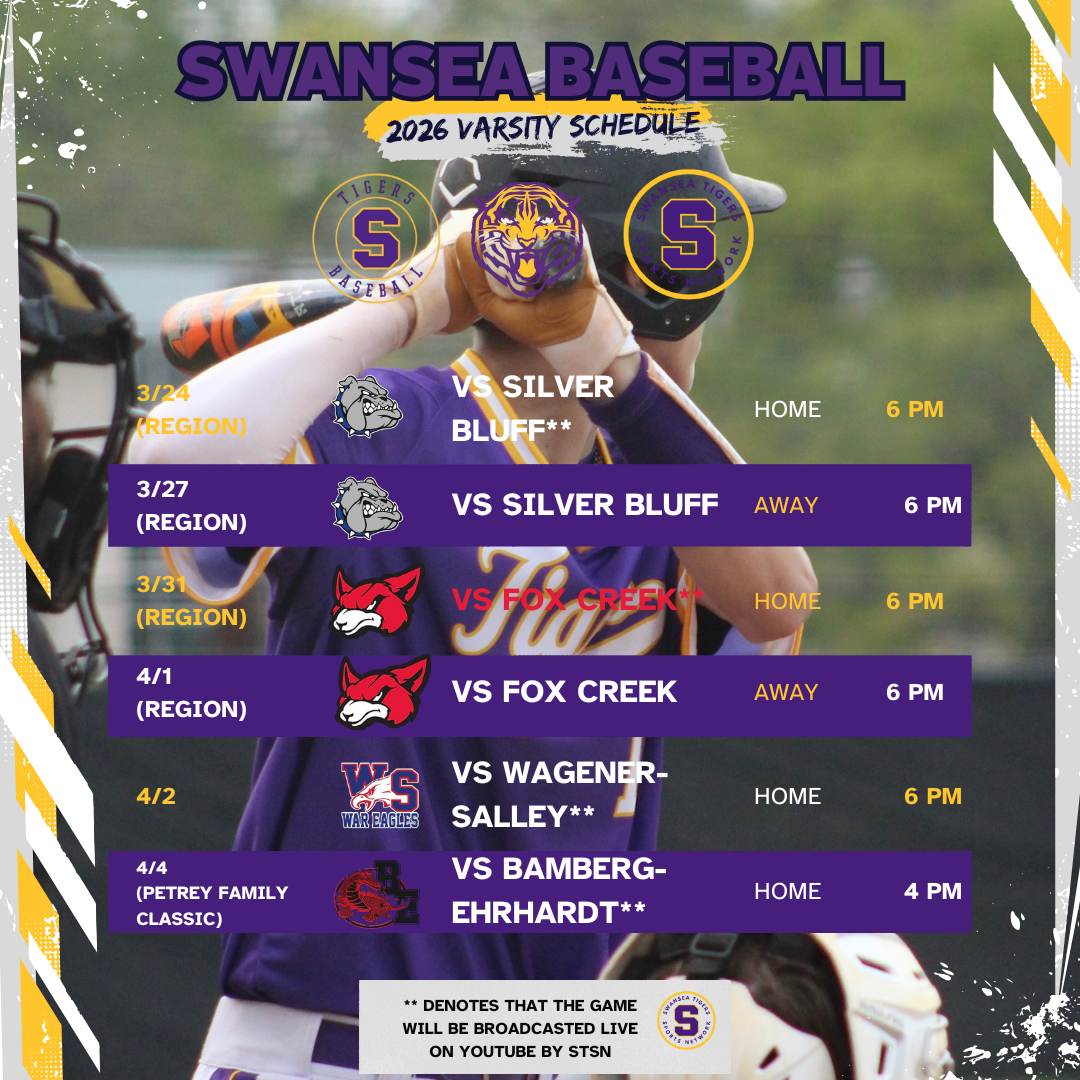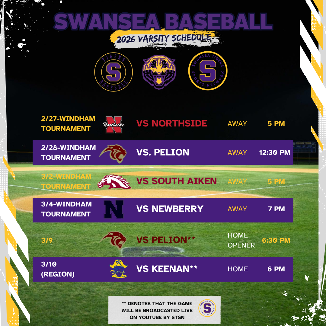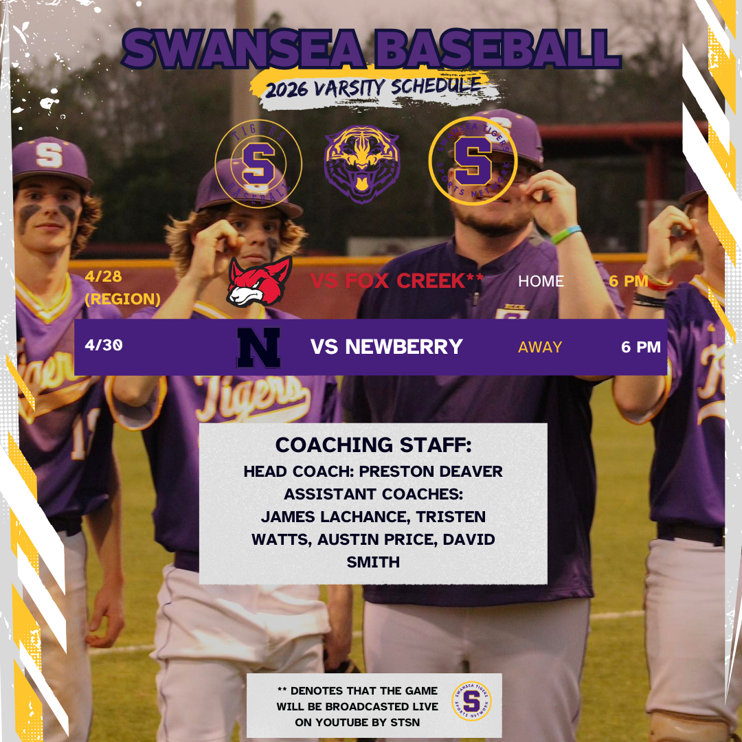 For the first time in the history of the Swansea Tiger Baseball Program 12 of the home games will be broadcasted live on our YouTube channel and by our team! Last season under the incredible leadership of Head Coach, Preston Deaver, the Tigers had an 18-6-1 season with an 8-4 region record. They made it to the third round of the 3A playoffs where they lost to Hanahan.